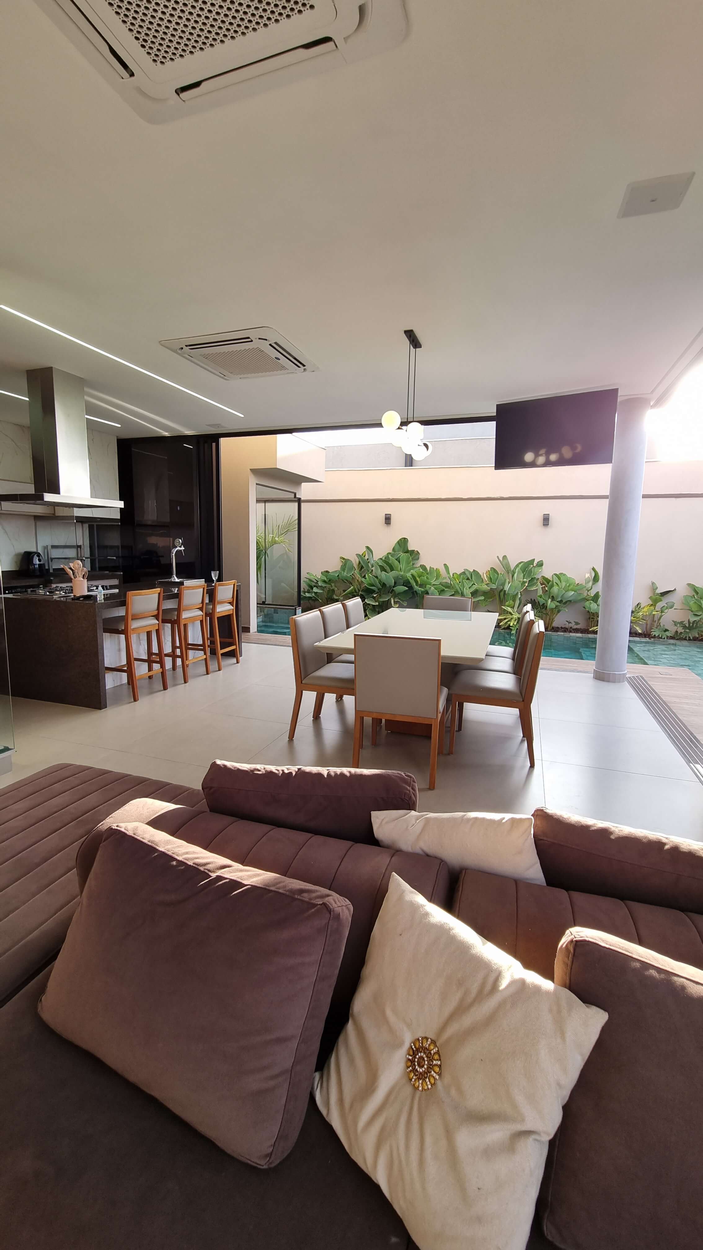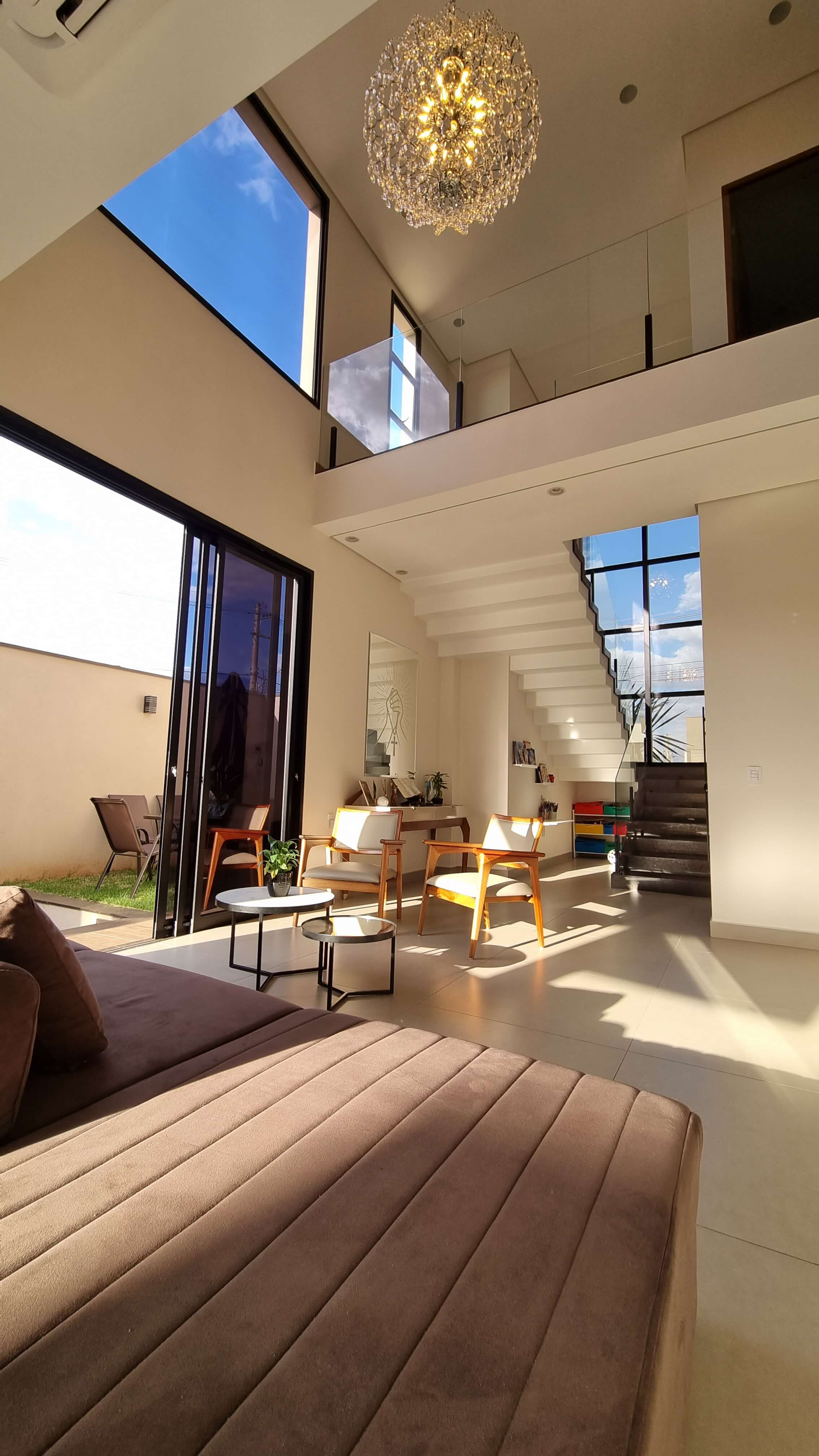 Casa sobrado em condomínio, estilo moderno, com 289,00², área intima com 3 quartos suítes, e mais uma suíte master com sala de banho e closet.