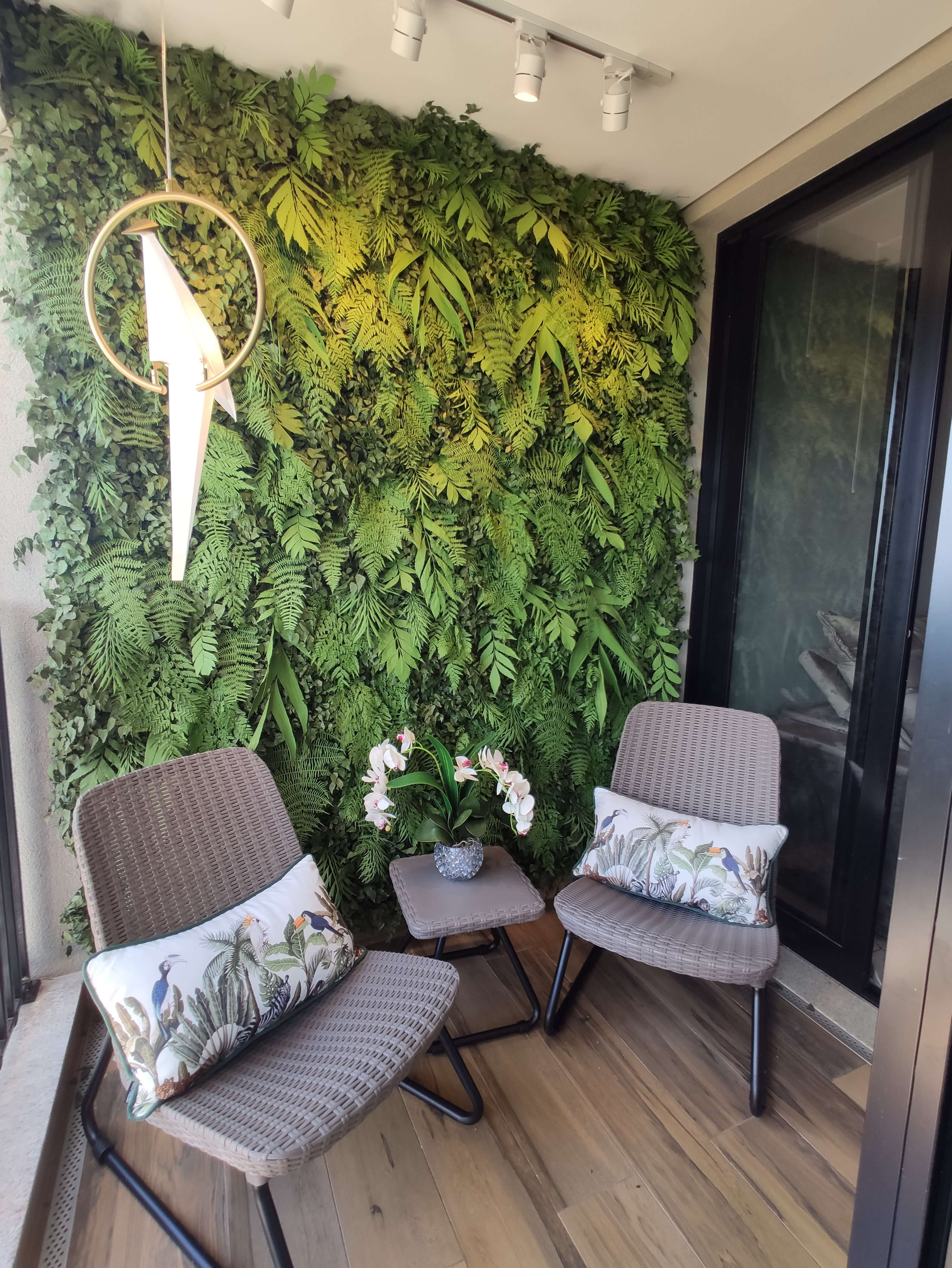Montamos todos os ambientes deste apartamento, escolhemos desde as cores das paredes, acabamentos de paredes (porcelanatos/revestimento brick), luminotécnico (locação e escolha de luminárias), mobiliários soltos (sofá, mesa, cabeceira, quadros, tapetes), além da elaboração do projeto de móveis planejados.