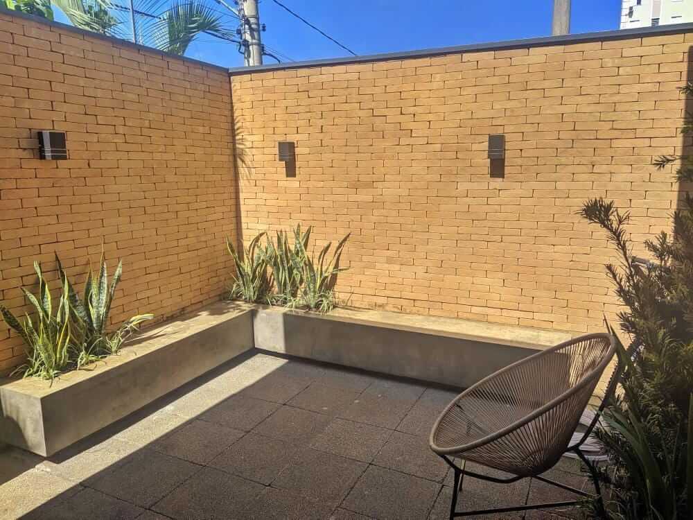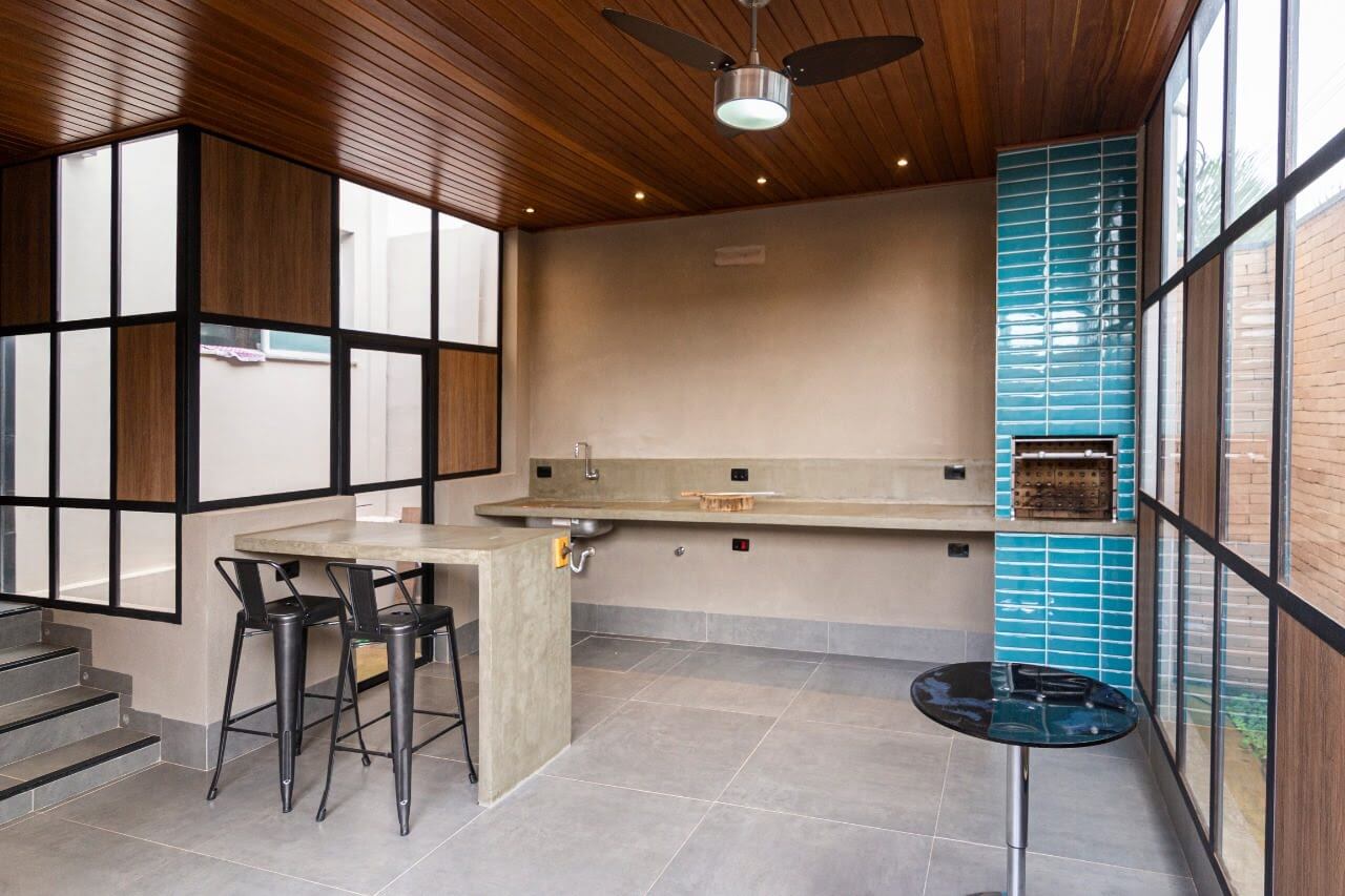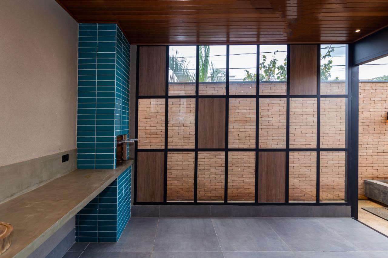 O espaço conta com 24m² de área coberta em estrutura metálica, forro madeirado, com churrasqueira e bancada, além de um banheiro social. E 20m² de área descoberto com banco e paisagismo integrados.