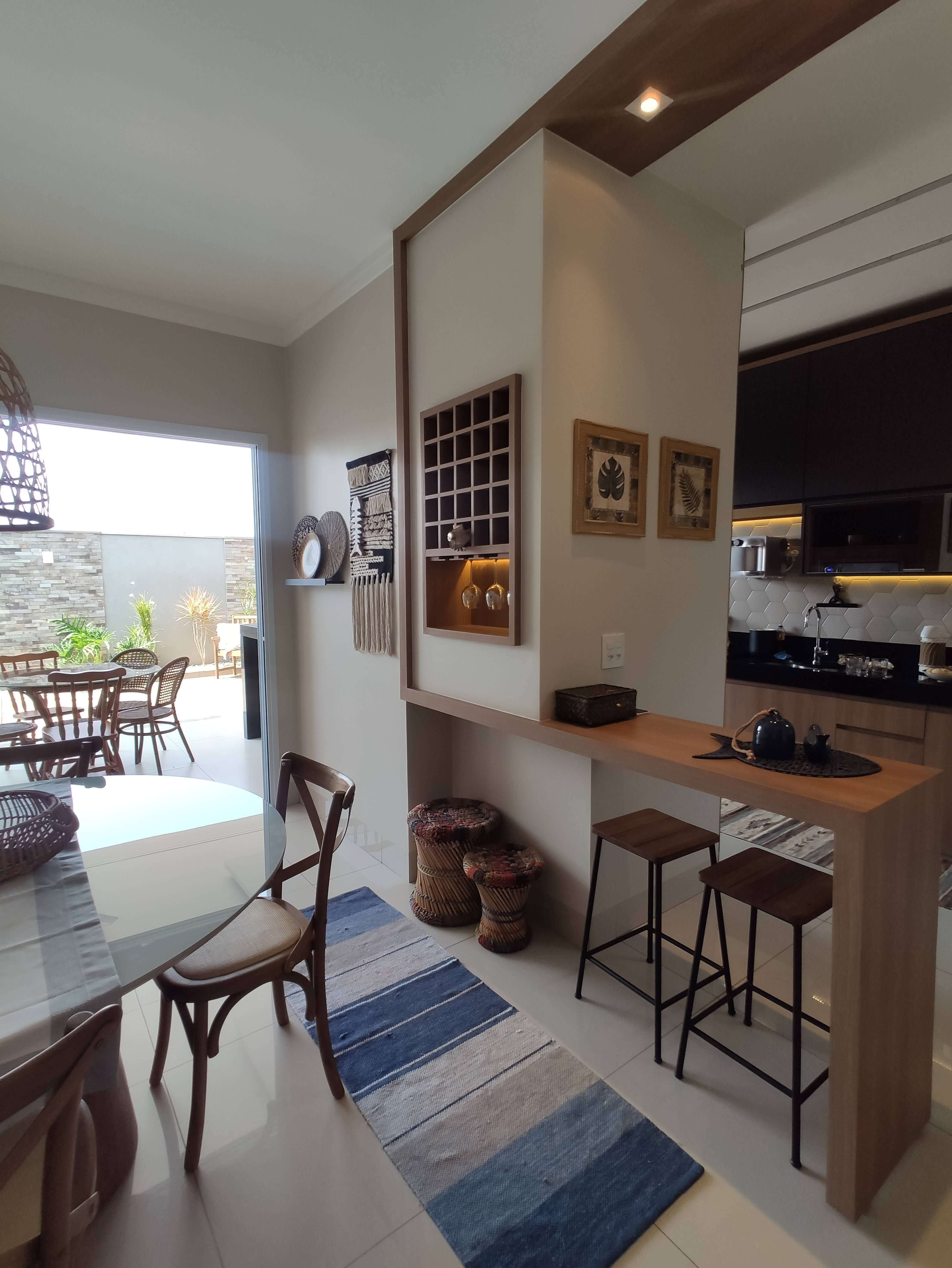 Elaboração de projeto para Casa térrea em Bairro, com 190m² de construção, valorização das áreas sociais, sendo hall de entrada, sala estar/tv, cozinha, sala de jantar, varanda gourmet com churrasqueia, todos esses ambientes integrados, priorizando iluminação e ventilação natural.